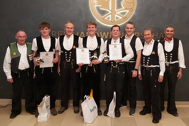 Obermeister Josef Zachmeier und sein Stellvertreter Hans Luber zeigten sich sichtlich stolz über die hervorragenden Leistungen der Prüflinge und nahmen die Ehrung persönlich vor. Als Zeichen besonderer Wertschätzung überreichten sie an die Prüfungsbesten einen finanziellen Zuschuss und einen „Timmy“.