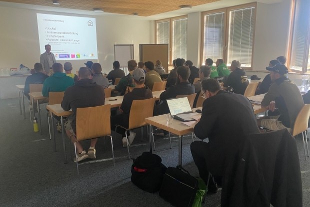 Zur Erweiterung ihres Fachwissens in den Bereichen „Außenwandbekleidung, Fensteranschluss und Sockelabdichtung“ hat der Landesinnungsverband des Bayerischen Zimmererhandwerks ausschließlich für Innungsbetriebe ein neues Angebot entwickelt: Die Weiterbildung „Außenwandbekleidung, Fensteranschluss und Sockelabdichtung“ für Gesellen, in der sich die Teilnehmer damit beschäftigen, wie eine fachgerechte Sockelabdichtung aussieht, wo typische Fehler beim Fensteranschluss lauern und wie sich Mängel an der Außenwand frühzeitig erkennen lassen.