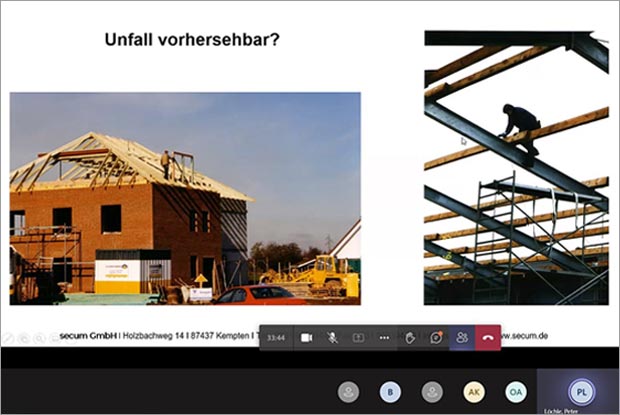 Dabei haben sich sieben Teilnehmer zugeschaltet: Einer klang etwas verzweifelt und sagte: „Ich habe mich schon öfter mit dem Thema Gefährdungsbeurteilung auseinandergesetzt – heute ist der letzte Versuch.“ Referent, Sicherheitsfachkraft und gelernter Zimmerer, Peter Löchle von der Firma secum, ermutigte die Innungsmitglieder: „Die App DigitGB ist ein gutes und einfaches Mittel für die Gefährdungsbeurteilung.“