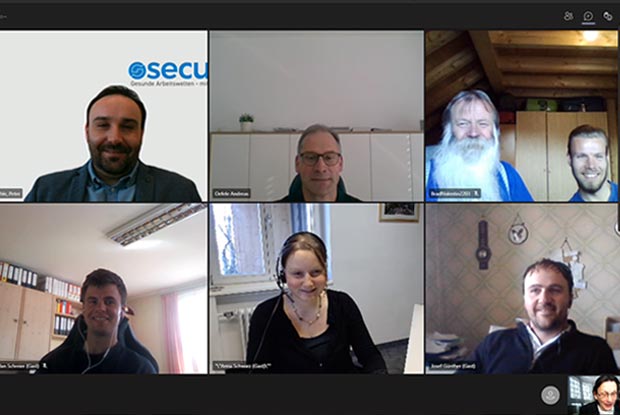 Beim Online-Seminar erklärte Sicherheitsfachkraft Peter Löchle (links oben), wie die Teilnehmer eine Gefährdungsbeurteilung schnell und einfach erstellen können.